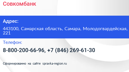 Совкомбанк по адресу 443100, Самарская область, Самара, Молодогвардейская, 221 в дальнейшем Организация, размещена в следующих категориях:
