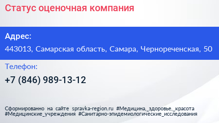 Статус, оценочная компания по адресу 443013, Самарская область, Самара, Чернореченская, 50 в дальнейшем Организация, размещена в следующих категориях: