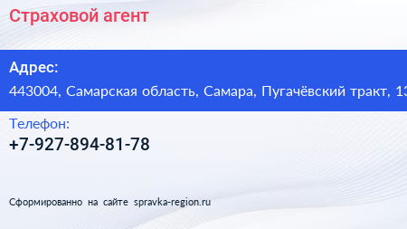 Страховой агент по адресу 443004, Самарская область, Самара, Пугачёвский тракт, 13 в дальнейшем Организация, размещена в следующих категориях: