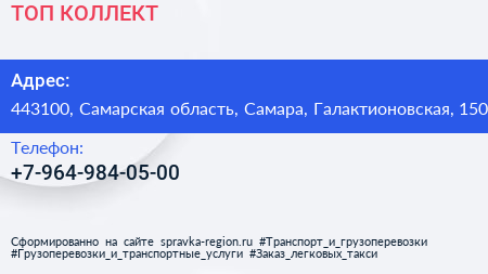 ТОП КОЛЛЕКТ по адресу 443100, Самарская область, Самара, Галактионовская, 150 в дальнейшем Организация, размещена в следующих категориях: