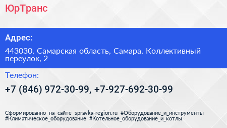 ЮрТранс по адресу 443030, Самарская область, Самара, Коллективный переулок, 2 в дальнейшем Организация, размещена в следующих категориях:
