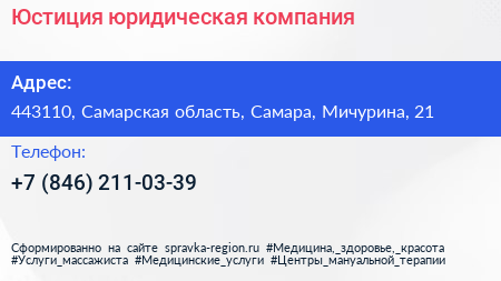 Юстиция, юридическая компания по адресу 443110, Самарская область, Самара, Мичурина, 21 в дальнейшем Организация, размещена в следующих категориях: