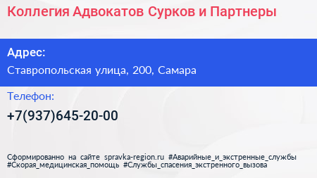 Коллегия Адвокатов Сурков и Партнеры по адресу Ставропольская улица, 200, Самара в дальнейшем Организация, размещена в следующих категориях: