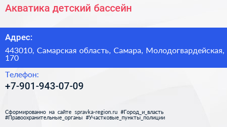 Акватика, детский бассейн по адресу 443010, Самарская область, Самара, Молодогвардейская, 170 в дальнейшем Организация, размещена в следующих категориях: