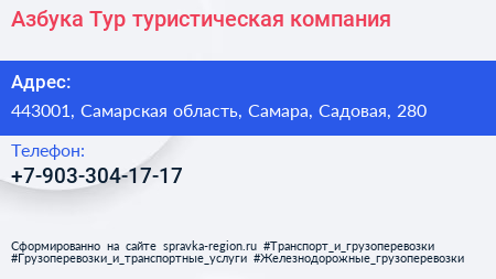 Азбука-Тур, туристическая компания по адресу 443001, Самарская область, Самара, Садовая, 280 в дальнейшем Организация, размещена в следующих категориях: