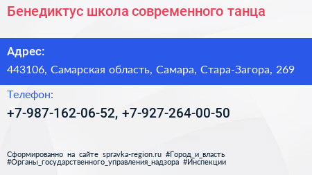 Бенедиктус, школа современного танца по адресу 443106, Самарская область, Самара, Стара-Загора, 269 в дальнейшем Организация, размещена в следующих категориях: