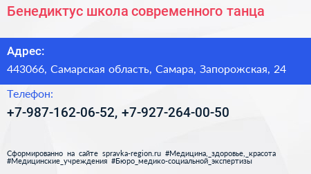 Бенедиктус, школа современного танца по адресу 443066, Самарская область, Самара, Запорожская, 24 в дальнейшем Организация, размещена в следующих категориях: