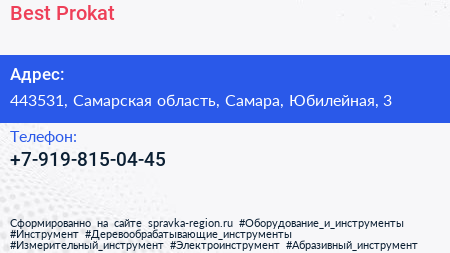 Best. Prokat по адресу 443531, Самарская область, Самара, Юбилейная, 3 в дальнейшем Организация, размещена в следующих категориях: