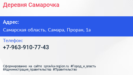 Деревня Самарочка по адресу Самарская область, Самара, Проран, 1а в дальнейшем Организация, размещена в следующих категориях: