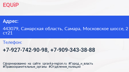 EQUiP по адресу 443079, Самарская область, Самара, Московское шоссе, 2 ст21 в дальнейшем Организация, размещена в следующих категориях: