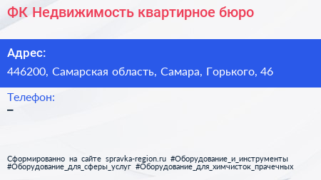 ФК Недвижимость, квартирное бюро по адресу 446200, Самарская область, Самара, Горького, 46 в дальнейшем Организация, размещена в следующих категориях: