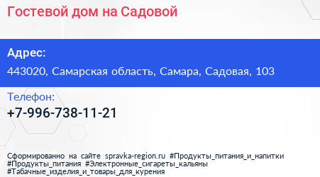 Гостевой дом на Садовой по адресу 443020, Самарская область, Самара, Садовая, 103 в дальнейшем Организация, размещена в следующих категориях: