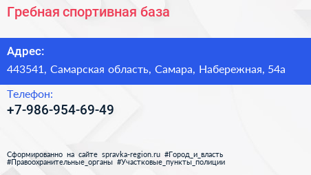 Гребная, спортивная база по адресу 443541, Самарская область, Самара, Набережная, 54а в дальнейшем Организация, размещена в следующих категориях: