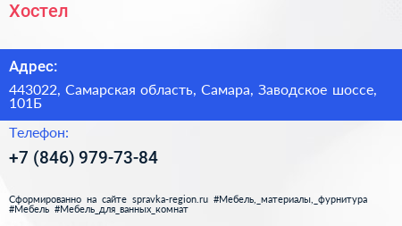 Хостел по адресу 443022, Самарская область, Самара, Заводское шоссе, 101Б в дальнейшем Организация, размещена в следующих категориях: