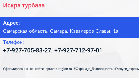 Искра, турбаза по адресу Самарская область, Самара, Кавалеров Славы, 1а в дальнейшем Организация, размещена в следующих категориях: