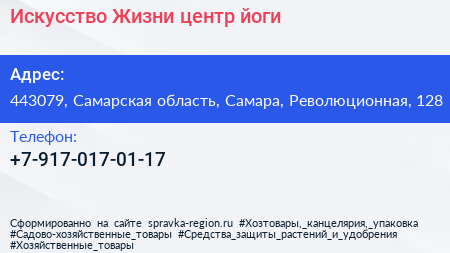 Искусство Жизни, центр йоги по адресу 443079, Самарская область, Самара, Революционная, 128 в дальнейшем Организация, размещена в следующих категориях: