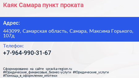 Каяк Самара, пункт проката по адресу 443099, Самарская область, Самара, Максима Горького, 107д в дальнейшем Организация, размещена в следующих категориях: