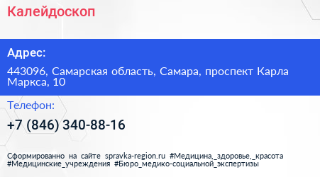 Калейдоскоп по адресу 443096, Самарская область, Самара, проспект Карла Маркса, 10 в дальнейшем Организация, размещена в следующих категориях: