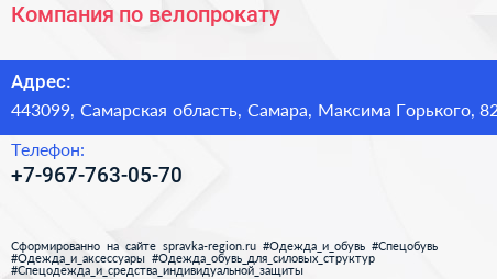 Компания по велопрокату по адресу 443099, Самарская область, Самара, Максима Горького, 82 в дальнейшем Организация, размещена в следующих категориях: