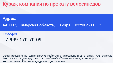 Кураж, компания по прокату велосипедов по адресу 443032, Самарская область, Самара, Осетинская, 12 в дальнейшем Организация, размещена в следующих категориях: