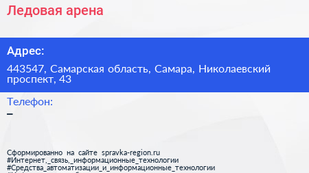 Ледовая арена по адресу 443547, Самарская область, Самара, Николаевский проспект, 43 в дальнейшем Организация, размещена в следующих категориях: