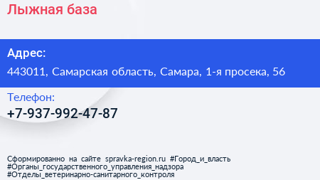 Лыжная база по адресу 443011, Самарская область, Самара, 1-я просека, 56 в дальнейшем Организация, размещена в следующих категориях: