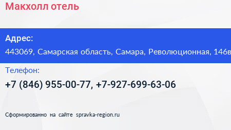 Макхолл, отель по адресу 443069, Самарская область, Самара, Революционная, 146в в дальнейшем Организация, размещена в следующих категориях: