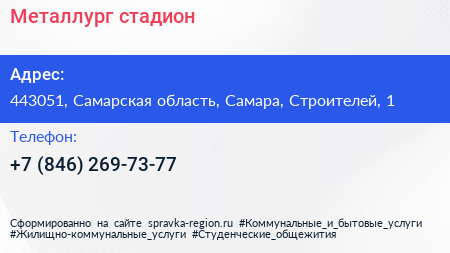 Металлург, стадион по адресу 443051, Самарская область, Самара, Строителей, 1 в дальнейшем Организация, размещена в следующих категориях: