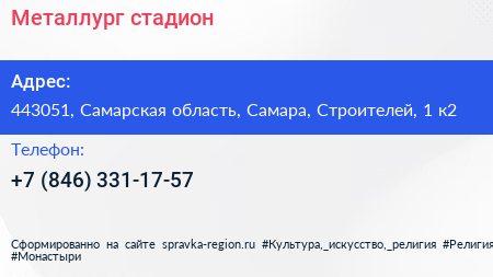 Металлург, стадион по адресу 443051, Самарская область, Самара, Строителей, 1 к2 в дальнейшем Организация, размещена в следующих категориях: