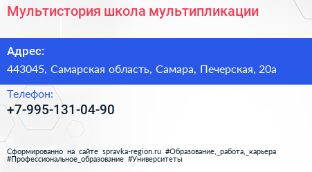 Мультистория, школа мультипликации по адресу 443045, Самарская область, Самара, Печерская, 20а в дальнейшем Организация, размещена в следующих категориях: