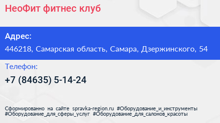 НеоФит, фитнес-клуб по адресу 446218, Самарская область, Самара, Дзержинского, 54 в дальнейшем Организация, размещена в следующих категориях: