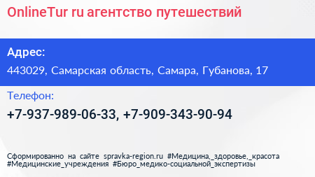 OnlineTur.ru, агентство путешествий по адресу 443029, Самарская область, Самара, Губанова, 17 в дальнейшем Организация, размещена в следующих категориях: