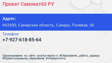 Прокат-Самокат63.РУ по адресу 443100, Самарская область, Самара, Полевая, 56 в дальнейшем Организация, размещена в следующих категориях: