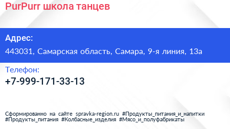 PurPurr, школа танцев по адресу 443031, Самарская область, Самара, 9-я линия, 13а в дальнейшем Организация, размещена в следующих категориях:
