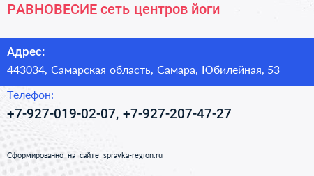 РАВНОВЕСИЕ, сеть центров йоги по адресу 443034, Самарская область, Самара, Юбилейная, 53 в дальнейшем Организация, размещена в следующих категориях: