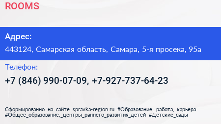 ROOMS по адресу 443124, Самарская область, Самара, 5-я просека, 95а в дальнейшем Организация, размещена в следующих категориях: