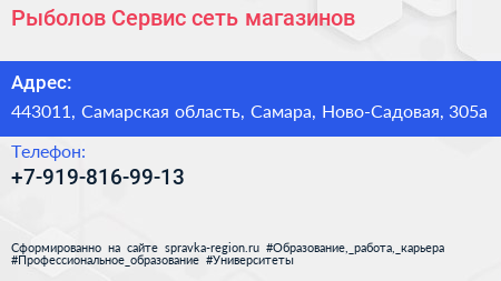 Рыболов-Сервис, сеть магазинов по адресу 443011, Самарская область, Самара, Ново-Садовая, 305а в дальнейшем Организация, размещена в следующих категориях: