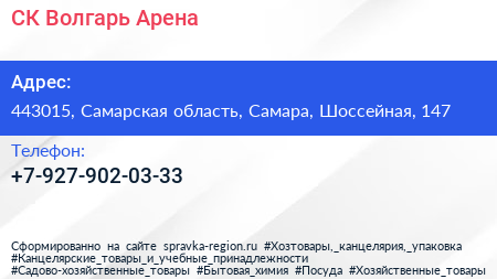 СК Волгарь Арена по адресу 443015, Самарская область, Самара, Шоссейная, 147 в дальнейшем Организация, размещена в следующих категориях: