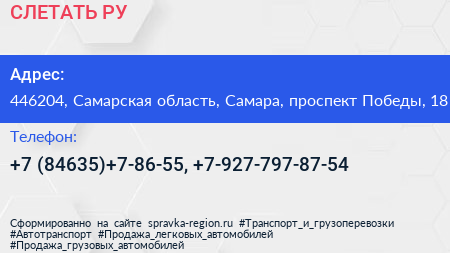 СЛЕТАТЬ.РУ по адресу 446204, Самарская область, Самара, проспект Победы, 18 в дальнейшем Организация, размещена в следующих категориях: