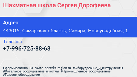 Шахматная школа Сергея Дорофеева по адресу 443015, Самарская область, Самара, Новоусадебная, 1 в дальнейшем Организация, размещена в следующих категориях:
