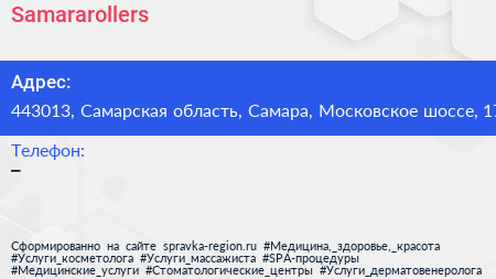 Samararollers по адресу 443013, Самарская область, Самара, Московское шоссе, 17 в дальнейшем Организация, размещена в следующих категориях: