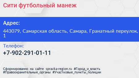 Сити, футбольный манеж по адресу 443079, Самарская область, Самара, Гранатный переулок, 1 в дальнейшем Организация, размещена в следующих категориях: