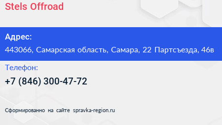 Stels Offroad по адресу 443066, Самарская область, Самара, 22 Партсъезда, 46в в дальнейшем Организация, размещена в следующих категориях: