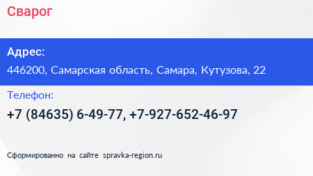 Сварог по адресу 446200, Самарская область, Самара, Кутузова, 22 в дальнейшем Организация, размещена в следующих категориях: