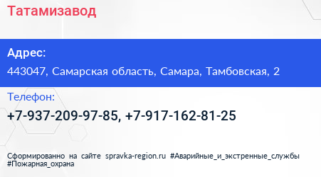Татамизавод по адресу 443047, Самарская область, Самара, Тамбовская, 2 в дальнейшем Организация, размещена в следующих категориях: