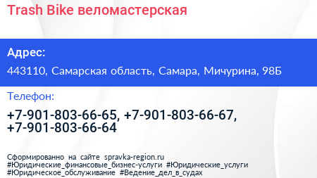 Trash Bike, веломастерская по адресу 443110, Самарская область, Самара, Мичурина, 98Б в дальнейшем Организация, размещена в следующих категориях: