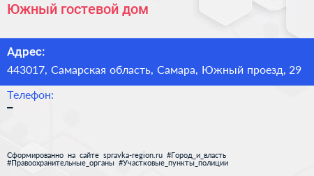 Южный, гостевой дом по адресу 443017, Самарская область, Самара, Южный проезд, 29 в дальнейшем Организация, размещена в следующих категориях: