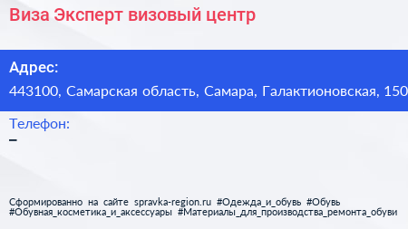Виза-Эксперт, визовый центр по адресу 443100, Самарская область, Самара, Галактионовская, 150 в дальнейшем Организация, размещена в следующих категориях: