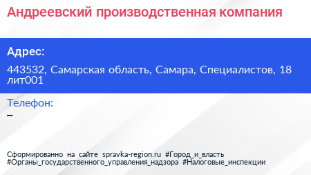 Андреевский, производственная компания по адресу 443532, Самарская область, Самара, Специалистов, 18 лит001 в дальнейшем Организация, размещена в следующих категориях: