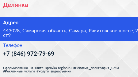 Для связи с организацией воспользуйтесь номером телефона: +7 (846) 972-79-69. Пн: c 08:00-17:00, Вт: c 08:00-17:00, Ср: c 08:00-17:00, Чт: c 08:00-17:00, Пт: c 08:00-17:00, Сб: c 08:00-17:00, Вс: c 08:00-15:00, вы можете обратиться в эту организацию.